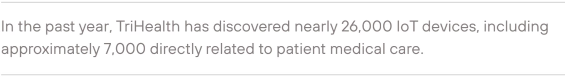 These capabilities empower TriHealth to provide the best patient care and mitigate risks while keeping IoT devices optimized and secure.