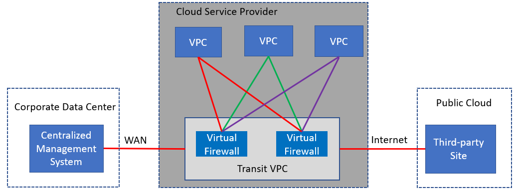 - Seamless scalability: The transit VPC scales simply by adding more virtual firewalls to the transit VPC. Automated tools offered by top-tier firewall vendors can even perform the necessary configuration and interconnection tasks with no human intervention.