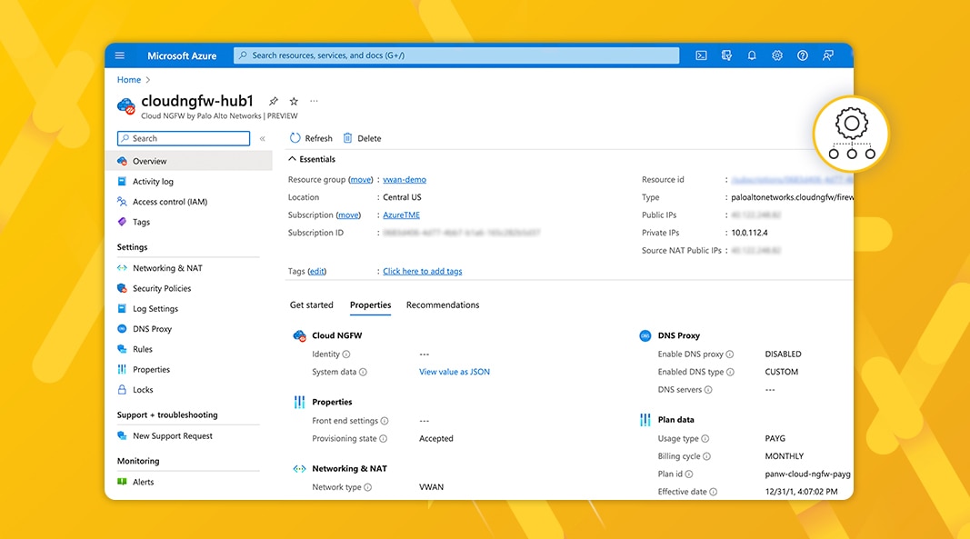 Make the most of fast, native ease of use. Use the Azure portal to create and manage Cloud NGFW for Azure resources. Then use either the Azure portal or the Palo Alto Networks Panorama management system for security policy management. Simple Azure Marketplace procurement helps, too.