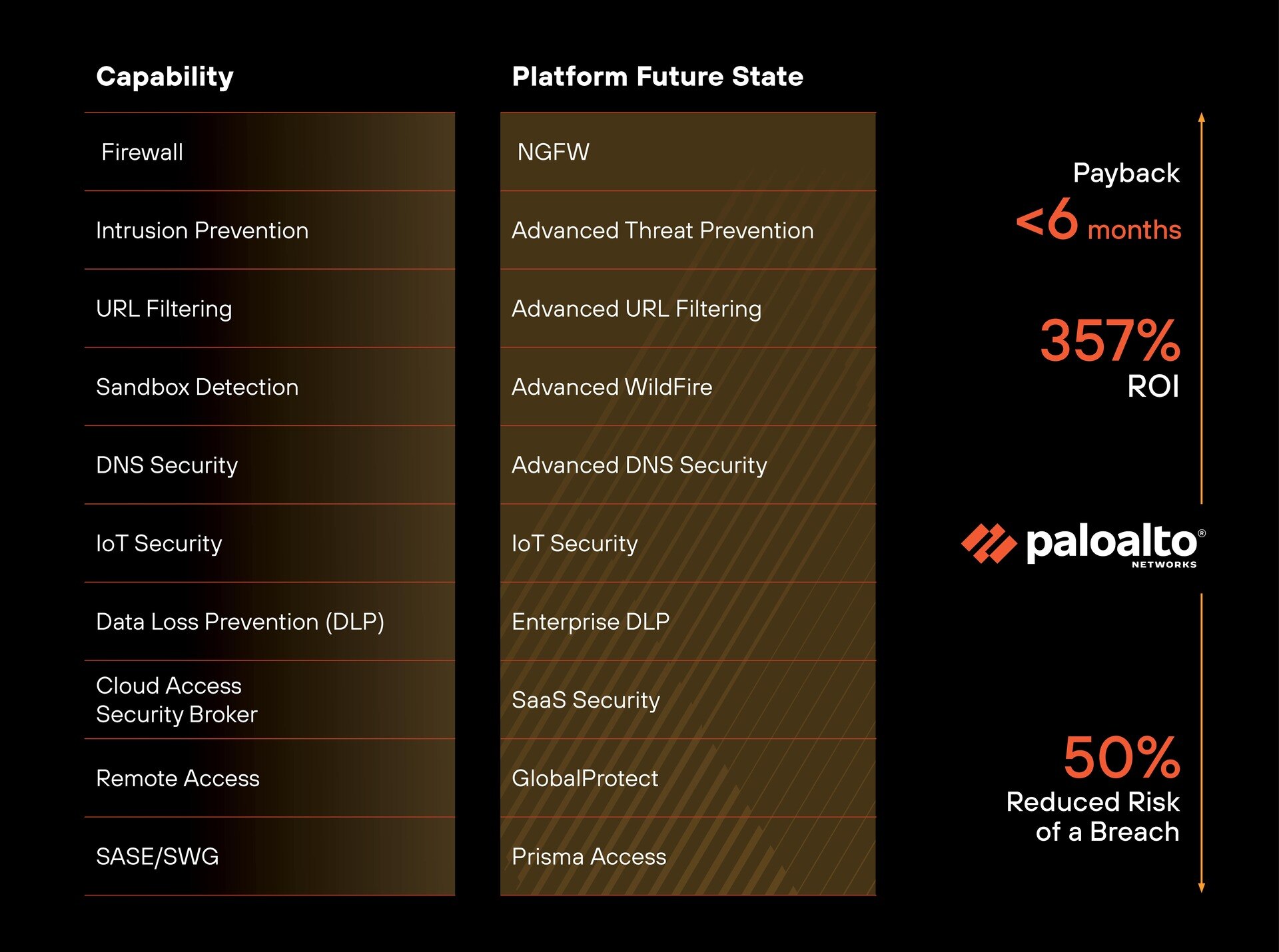 Palo Alto Networks equips IT leaders with unmatched visibility, agility, and control—enabling them to simplify and automate operations while staying one step ahead of evolving threats. With intelligent, adaptive technology that continuously learns and adapts, organizations can mitigate risk at machine speed, secure complex environments, and maintain business continuity, even in the face of relentless cyberthreats.